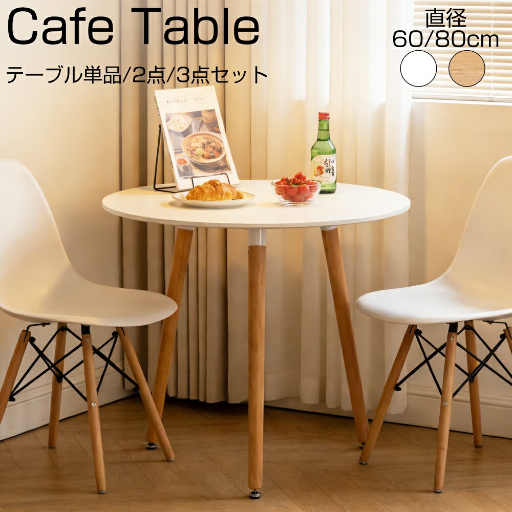 ■【最大2000円OFFクーポン&P5倍!2/4 20時〜】カフェテーブル ダイニングテーブル ダイニングテーブルセット 2点 セット 3点セット 丸テーブル 60cm 80cm ホワイト ナチュラル イームズ テーブル おしゃれ 一人暮らし 食卓 北欧 無垢 韓国 円型 丸型 テーブル